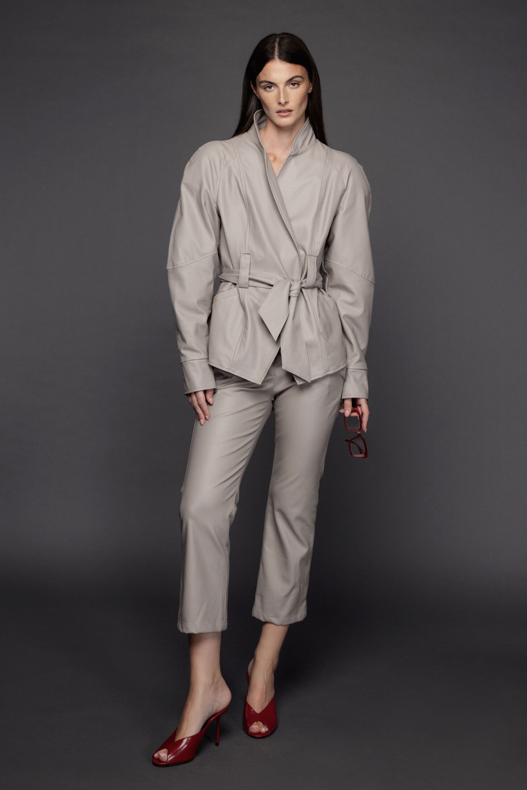 Linee scultoree e minimalismo sofisticato: il nuovo tailoring in ecopelle ridefinisce la femminilità con volumi ispirati agli anni ’80 e texture morbide. Un equilibrio perfetto tra forza e leggerezza, in chiave contemporanea.